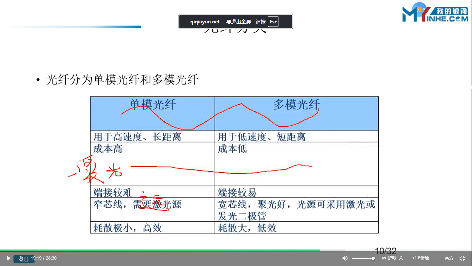 光纤:一种玻璃纤维线缆,也就是光缆,传输相当快。 可分为